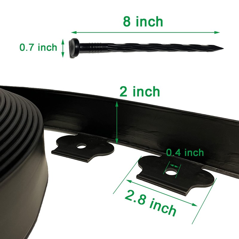 - You Will Get: One roll is 20 feet long, 2 inches height black garden borders and edging and 20 pcs 8 inch nylon spiral spikes that helps it keep shape well.