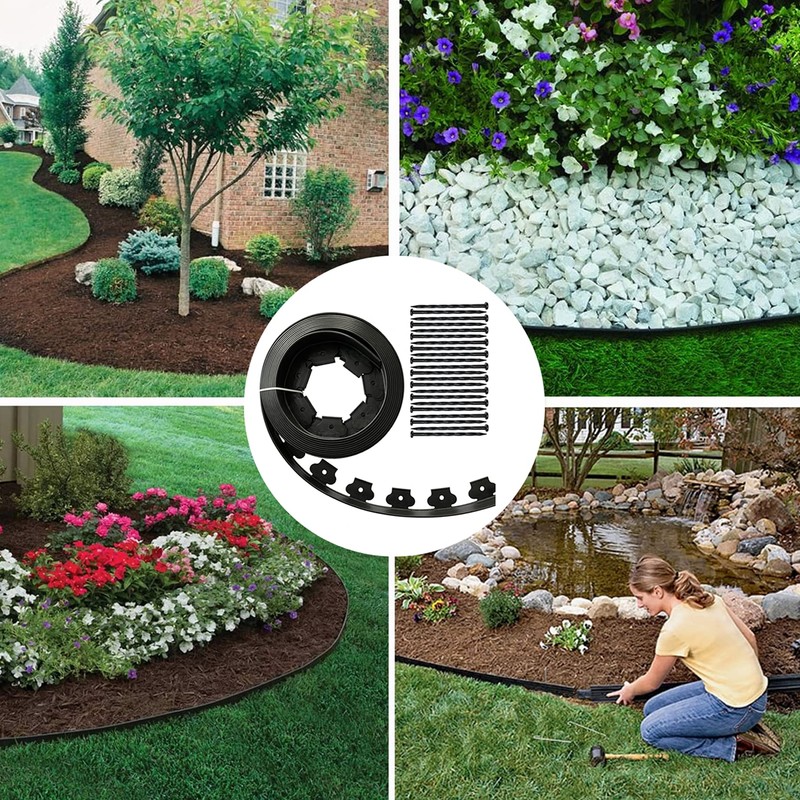 - Easy to use: you simply need to unroll it, allowing it to heat up in the sun become more flexible, Place in the shape of your design, and then hammer in the stakes into the ground fixed. (Recommend using a rubber mallet to hammer in the stakes)