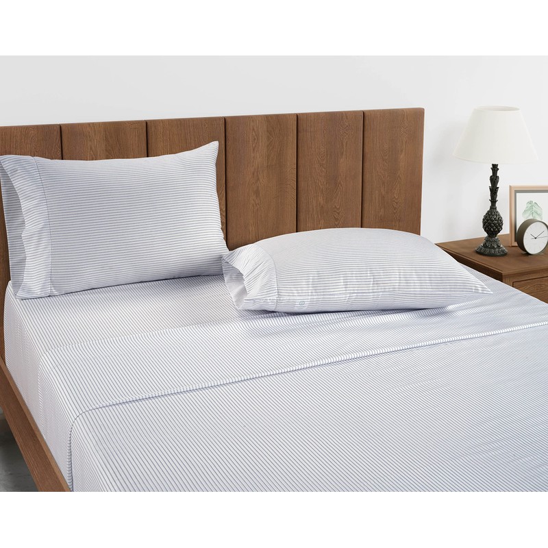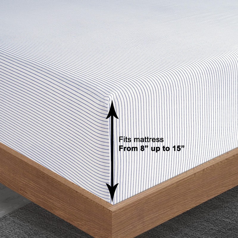 LANE LINEN King Fitted Sheet, 100% Organic Cotton, 3-Piece Set (1 Fitted Sheet,2 Pillowcases), Percale Weave, Ultra Soft, Breathable,Fits Mattress Upto 15" Deep - Ticking Stripe(No Flat Sheet)