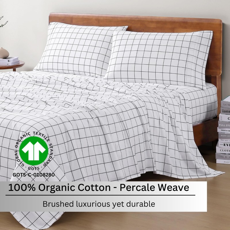 LANE LINEN LANE LINEN 100% Organic Cotton Full Size Bed Sheets, Eco Friendly Fully Elasticized Okeo Tex Certified Printed Cotton Sheets Full, Percale Weave Soft & Comfy Comes in Variety of Prints - Windowpane