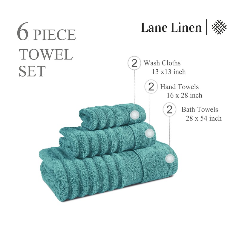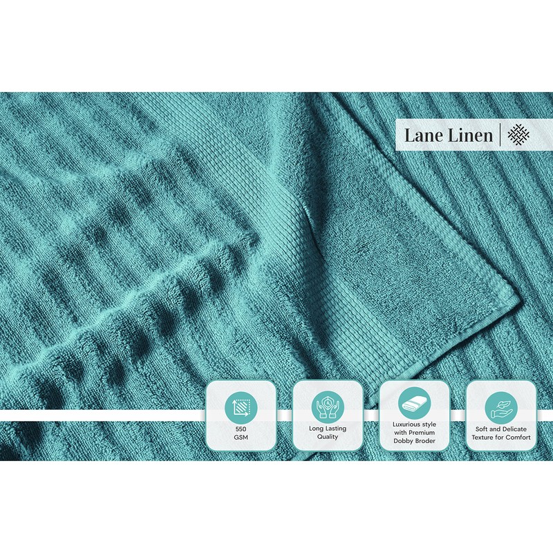 LANE LINEN Luxury Ribbed Bath Towels - 100% Cotton Towels for Bathroom, Zero Twist, Soft Textured, Extra Absorbent, Quick Dry, 2 Bath Towels, 2 Hand Towels, 2 Wash Cloths - Teal (6 Piece Set)