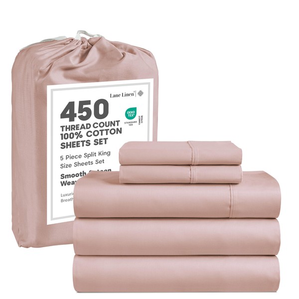 - Premium Quality: Enjoy the luxury of Lane Linens 450 thread count sateen sheets, made with 100% cotton for ultimate comfort and durability. Made with high-quality cotton, our split king sheets are built to withstand regular use and maintain their softness and durability even after multiple washes.