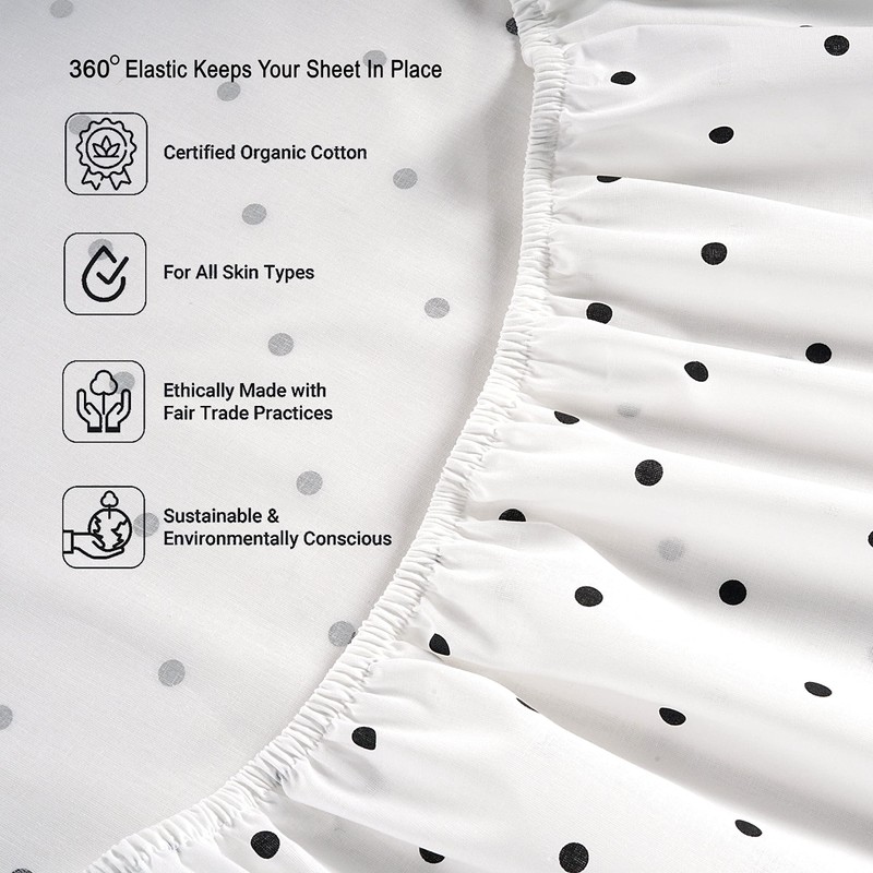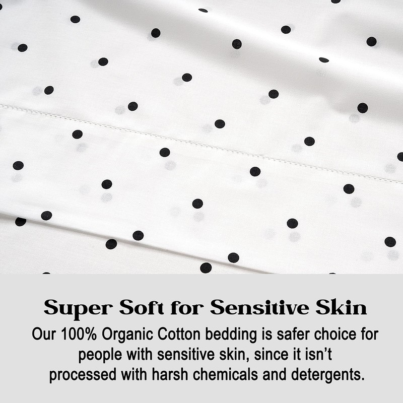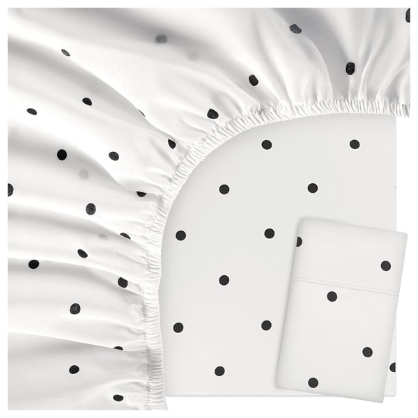 Lane Linen Twin XL Fitted Sheet, 100% Organic Cotton, Soft and Breathable Bedding for Twin XL Bed, Includes 1 Bottom Sheet and 1 Pillowcase, 15" Deep Pocket - Black Dot