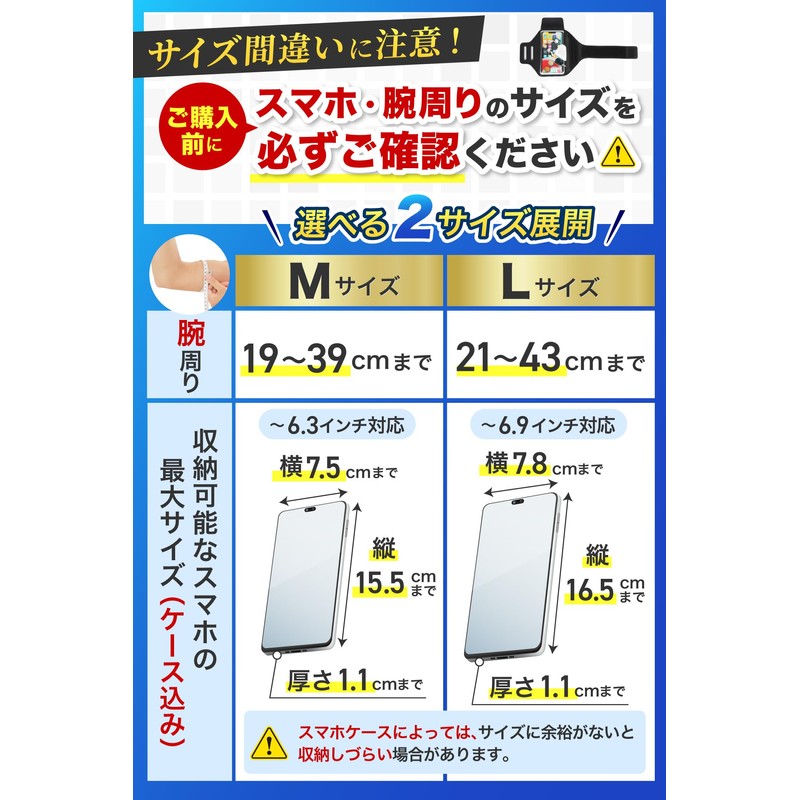 | Size: | L(腕周り21~43m/6.9インチまでのスマホに対応) |