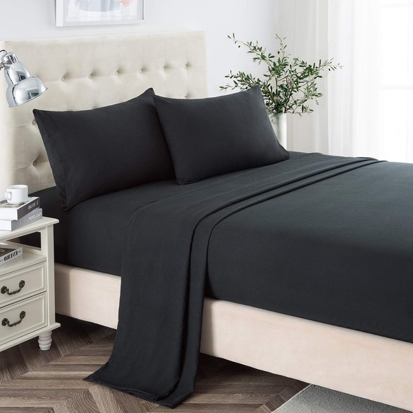 Lanest Housing Full Size Sheets,2400 Thread Count Soft Deep Pocket Microfiber Sheets, 4 Pieces Black Bedding Sheets & Pillowcases