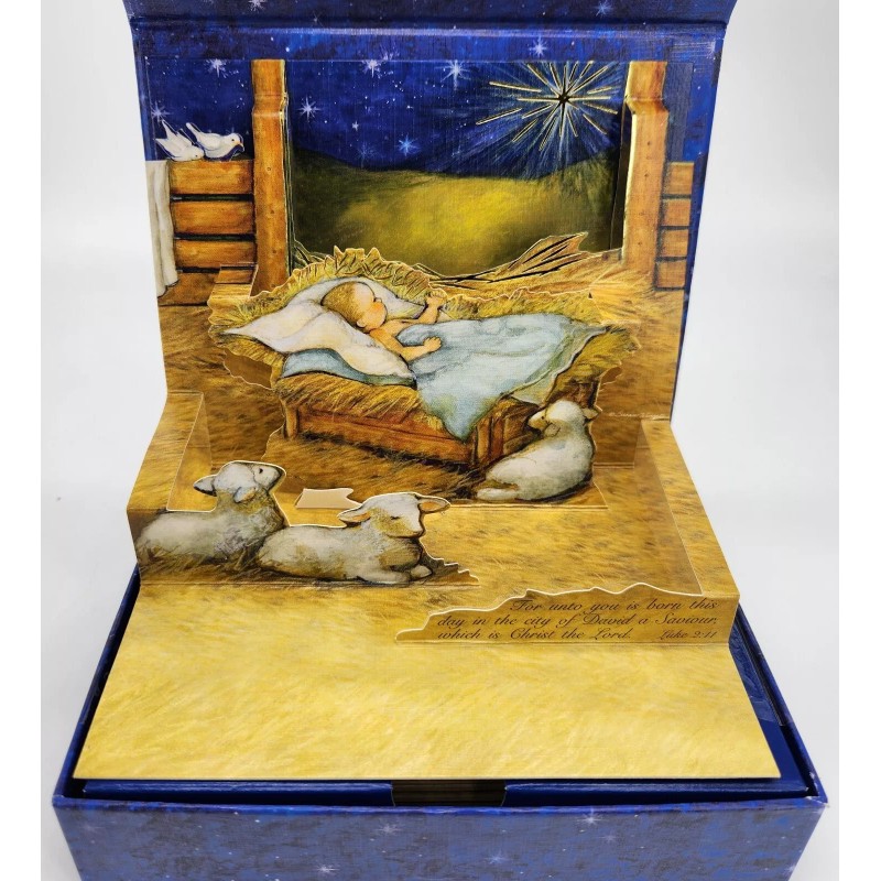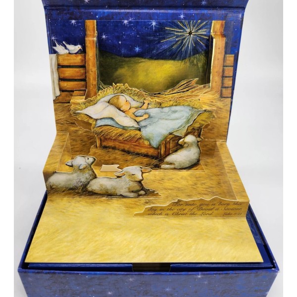 Lang 1 LANG Linen POP UP Christmas Card Envelope+Stamp ADORE HIM Manger Susan Winget