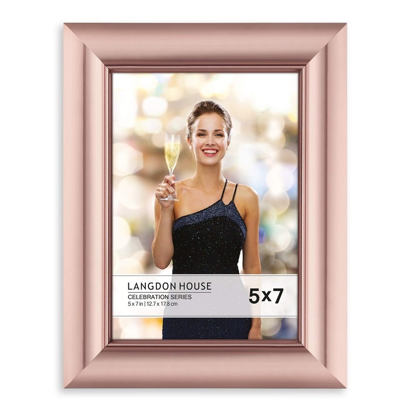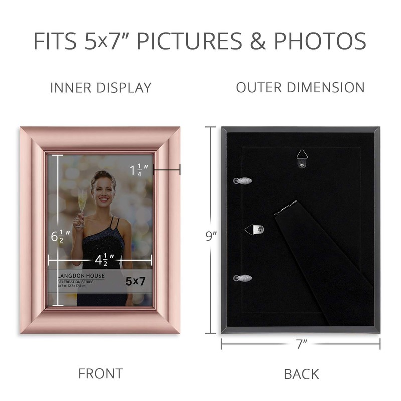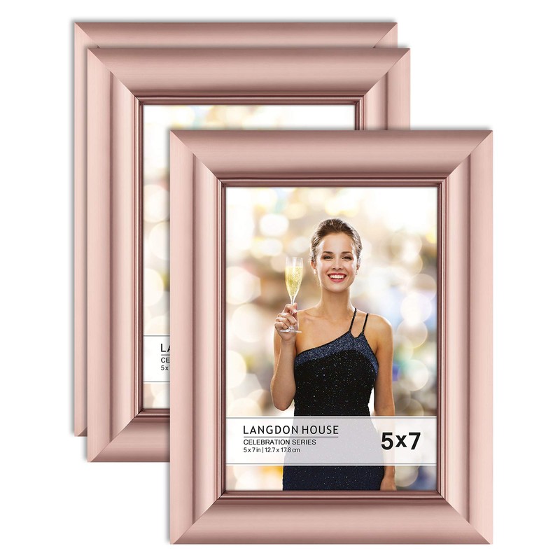 Langdon House 5x7 Picture Frames (Rose Gold, 3 Pack), Contemporary Glam Photo Frames 5 x 7, Wall Mount or Table Top, Celebration Collection