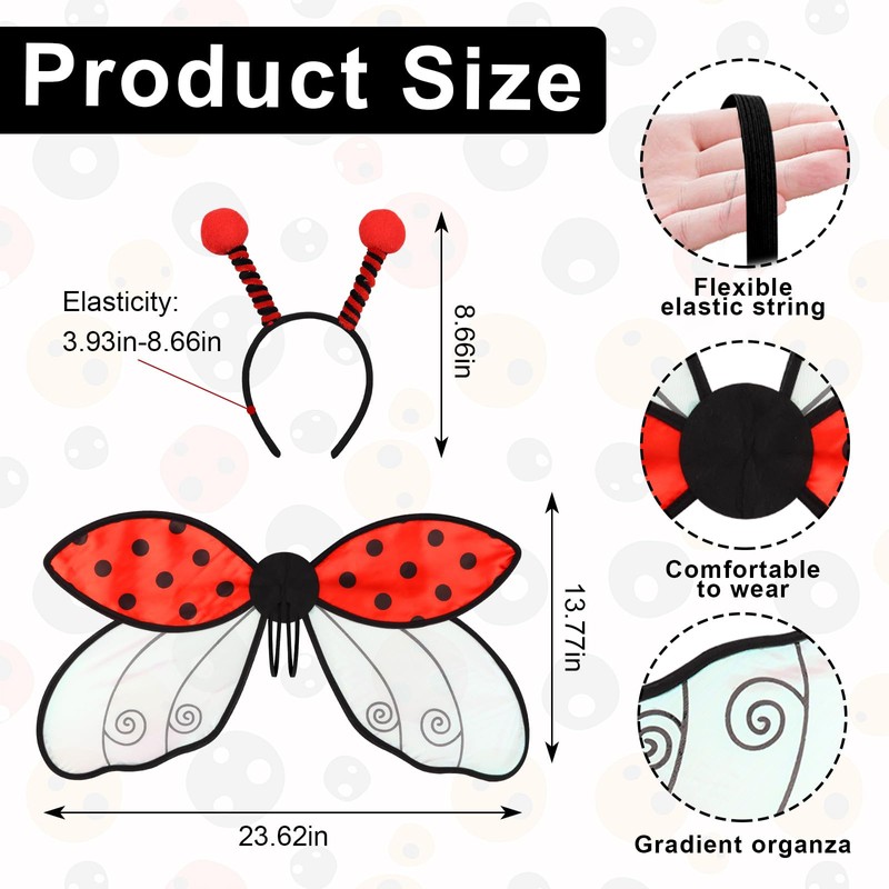 - 「Nice Creative Gift Options」: Holiday party favor costume gifts for everyone, which can be used as new and creative ladybird costume accessories for your friends, children and family to decorate and finish their party costume cloth, suitable medium size and easy to set off a strong fun and active Christmas atmosphere. The butterfly wings may be slightly bent due to packaging and transportation problems. Please contact us on time.