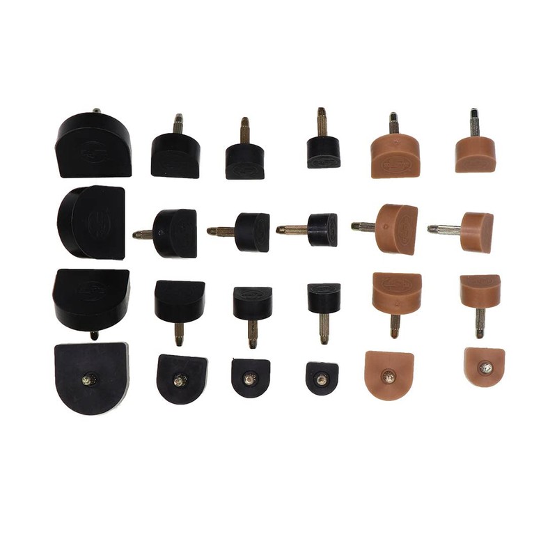 In this compilation you will find the most common pin heel sizes twice each to repair the worn heels of your favourite shoes.