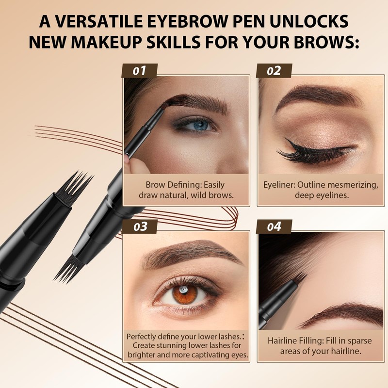 LANGMANNI Eyebrow Pen - Wild Micro-4Tip Prong Lasting Water Eyebrow Pencil, For Effortless & Natural Looking Brows That Last All Day (#3 Ash Brown 2pcs)