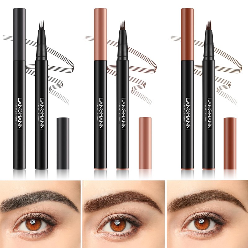 - 2、Just Like Your Real Brows & Easy to Use - The tiny prongs of the LANGMANNI Eyebrow Pen mimic a brush. Angle the prong tip across brows and draw hair-like strokes from anchor to tail. Repeat as desired for added intensity. It sketches your brows to resemble 3D natural hairs.
