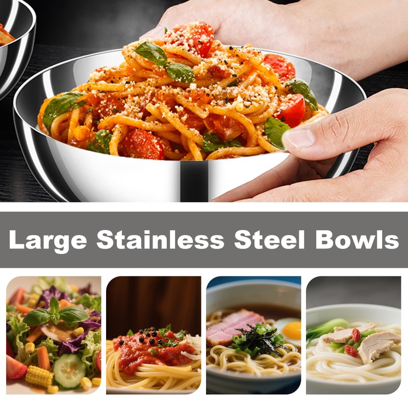 - 【Generous Serving Size】– With a generous 47oz capacity and wide stable base, the metal bowl with spoon and fork comfortably accommodate generous portions of pasta, layered grain bowls, family-style salads or full-size pho portions noodle dishes with all your favorite toppings and sauces. 22x8cm(L x H).