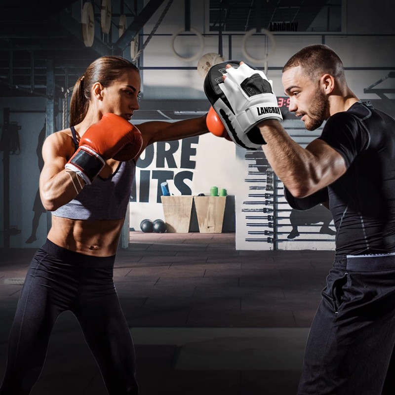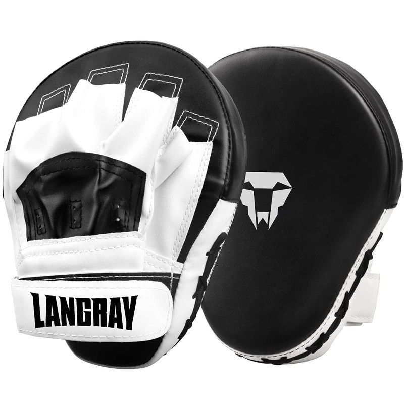 LangRay Punching Pad Mitts, Curved Boxing Focus Pads Target Mitt for Kickboxing, MMA, Muay Thai,Black and White