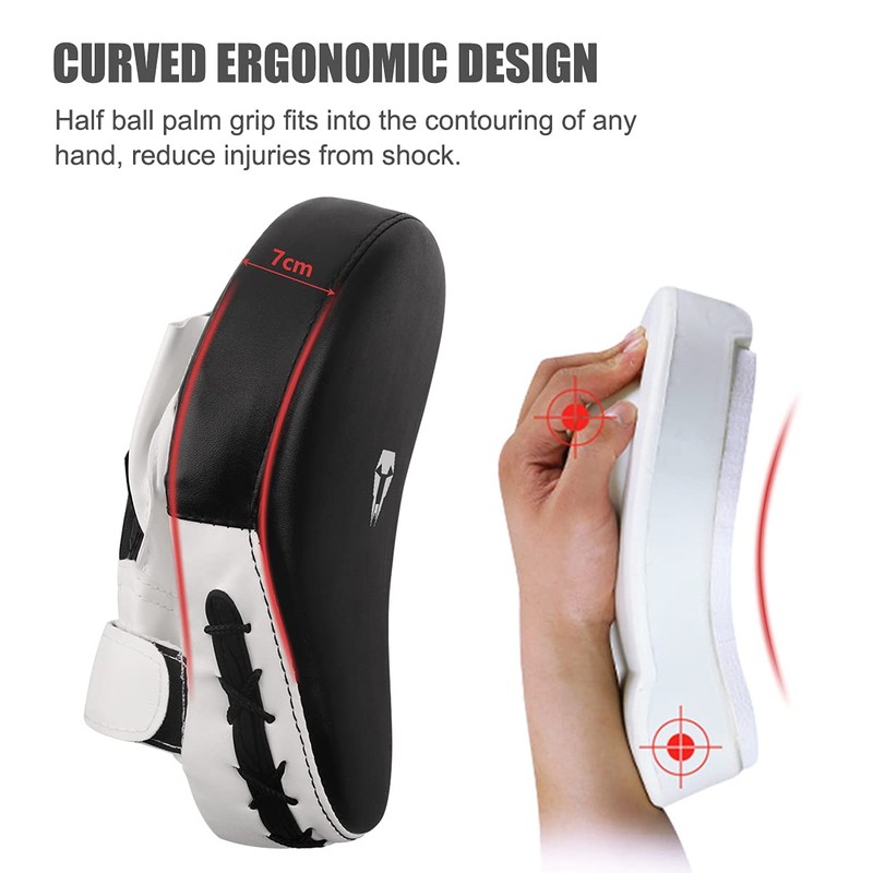 - 【Ergonomic Design】Kickboxing pads adopts palm design which fit the natural curvature of the hand, and focus your power on the punching palm pad. This design helps you distribute the force evenly and protects your wrist.