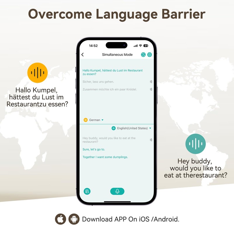 - High quality Bluetooth earphones:The translation earphones are well made. These language translation earplugs are designed to be comfortable, with ergonomic earplugs that are suitable for long-term wear. With its stylish design, you can easily carry it anytime and anywhere, making it an ideal travel companion.
