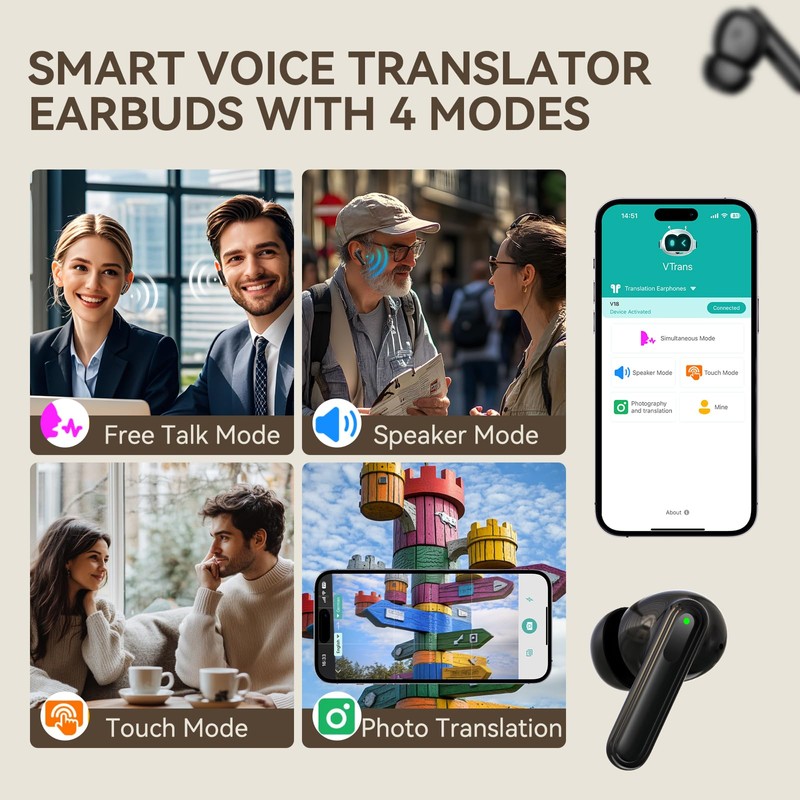 - Real time translation earbuds with an accuracy rate of 98%, can translate and play in the other person's ear in just 0.5 seconds, improving communication efficiency and experiencing a pleasant communication process.This headset supports offline translation of mainstream languages, and can be used offline without connecting to the Internet, which is very convenient.