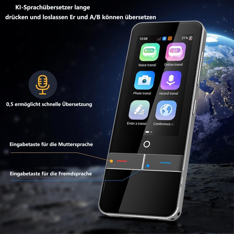 - AI Translator for Offline Translation: The translator provides accurate offline translation. Switch from online mode to offline mode in areas without Internet access. Support offline translation in 19 languages: Chinese, English, Japanese, French, Spanish, Korean, Russian, German, etc. A translation tool that makes communication easier and more convenient.