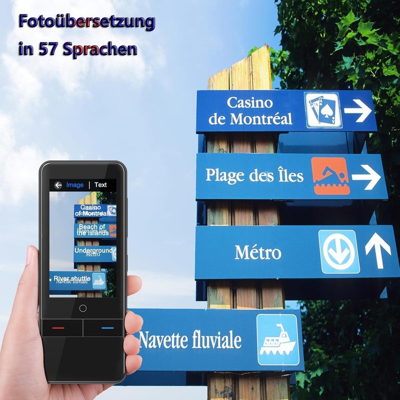 - HD Photo Translation: This AI translation device is equipped with a 5 megapixel HD camera and supports online photo translation in up to 57 languages and offline translation in 23 languages. 3.2 inch high-definition touch screen with ultra-clear resolution. The perfect tool for quickly reading menus, traffic signs, magazines, labels and newspapers in different languages!