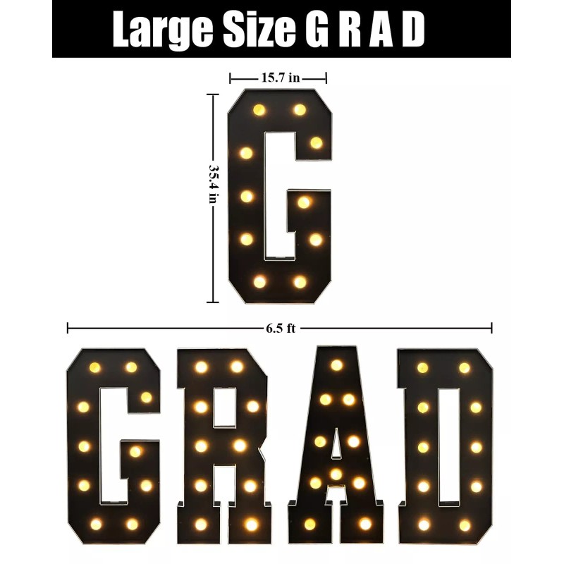 - WIDE APPLICATION - This large 2025 GRAD Alphabet Set is destined to be the brightest party decoration ever. You can use it with the balloons garland arch Kit or balloon stand and balloon frame. Perfect for graduation parties, school events, or home decor, this marquee light adds a festive touch to any space, making it the perfect photo backdrop for your photos.