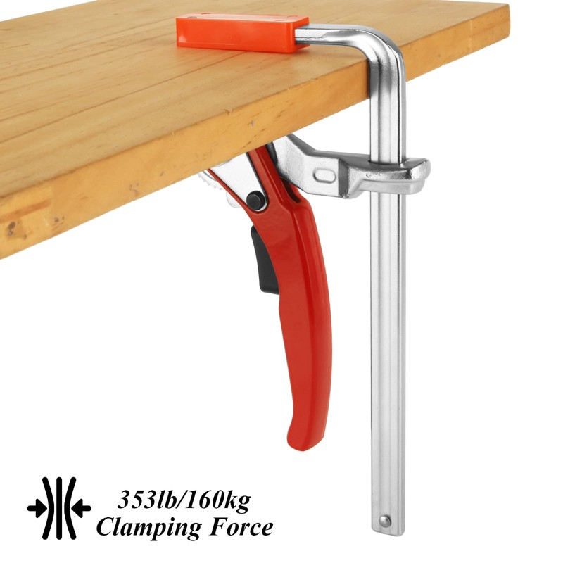 • Product Design: Ratchet guide rail F clamp is a self-aligning design with a ratcheting mechanism that allows for easy locking and quick release, and the clamp's built-in ABS pad prevents damage to the contact surface while providing a larger non-slip surface area for more stable clamping and easier operation, thus increasing work efficiency