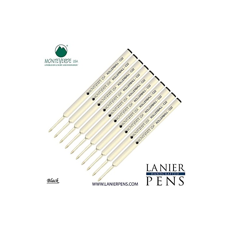Lanier Combo Pack - 10 Pack - Monteverde® Rollerball C22 Paste Ink Refill Compatible with Most Cross® Style Rollerball Pens - Black (Fine Tip 0.6mm)