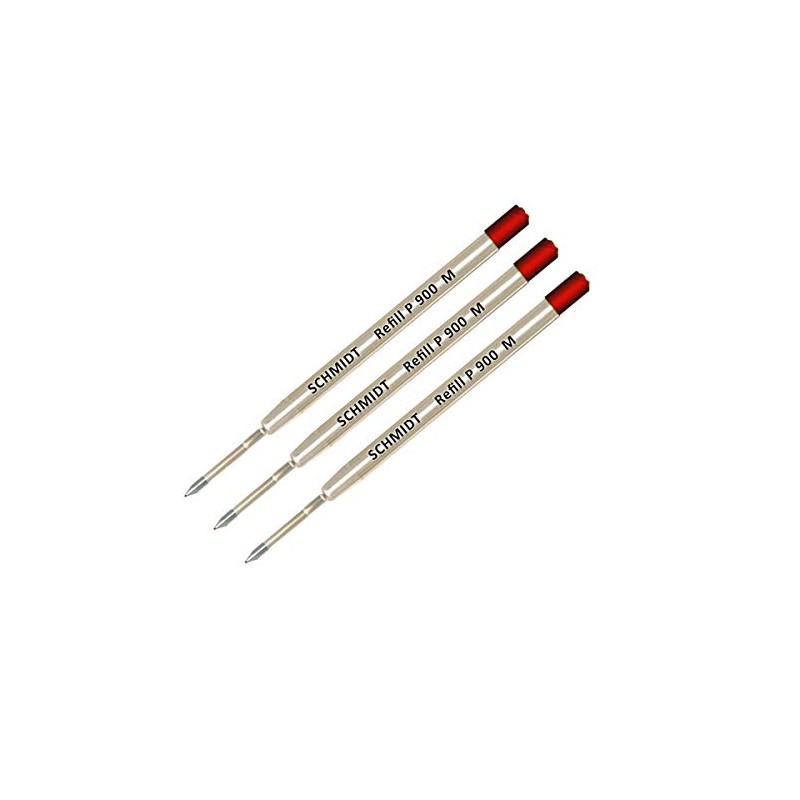 • 3X Schmidt P900 M Parker Style Ballpoint Refill Red Ink Medium Tip