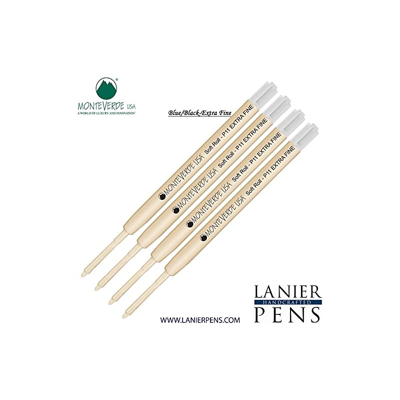 Lanier Combo Pack - 4 Pack - Monteverde® Soft Roll™ Extra Fine Ballpoint P11 Paste Ink Refill Compatible with Most Parker® Style Ballpoint Pens - Blueblack (Extra Fine Tip 0.5mm)