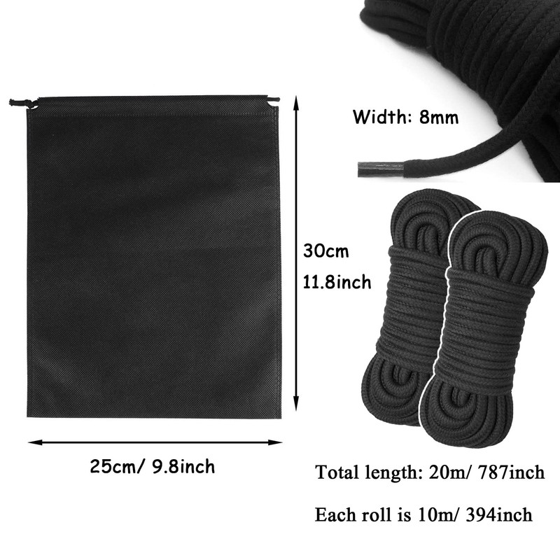 - Size: Each cotton rope is approx 10m/32feet long, total 20m (64ft), and the diameter is 8mm