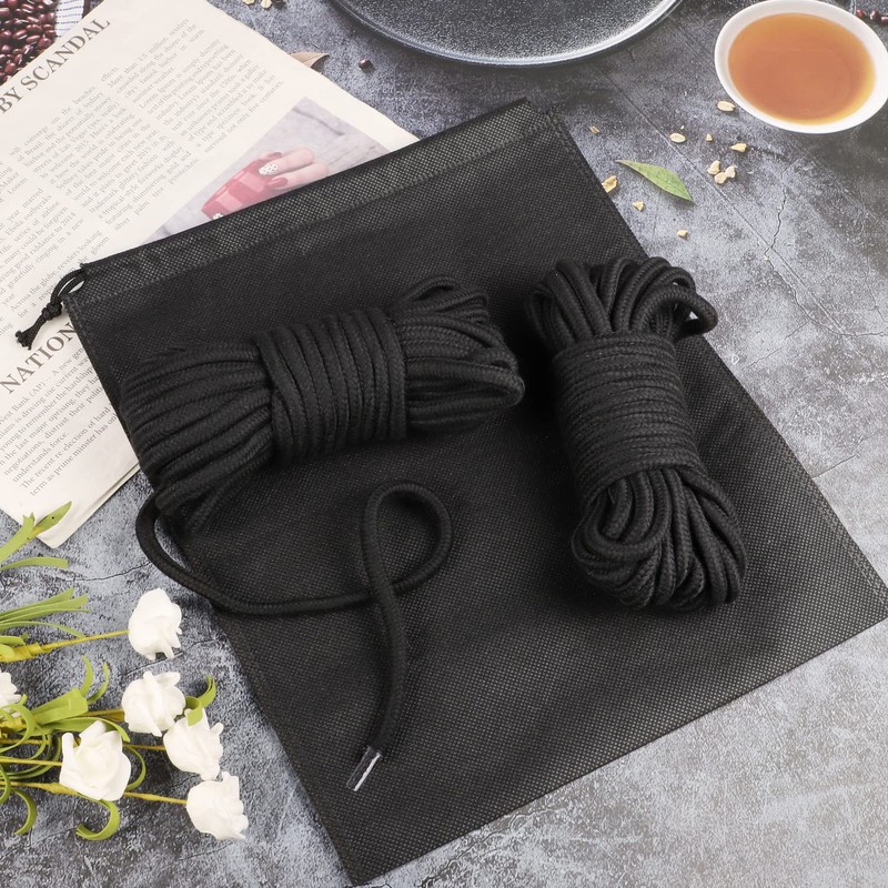 Lanjue 2 Pack 10m/32 Feet Soft Cotton Rope, Black 8mm Long Thick Craft Cotton Cord All Purpose Tying Rope Durable Twisted Cord with Storage Bag