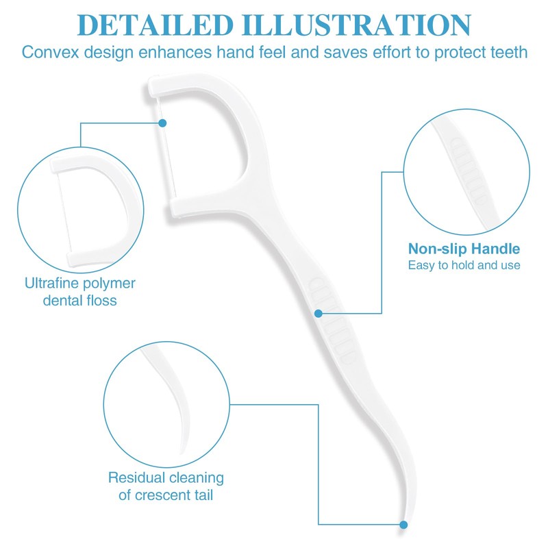 - 【2-in-1 Design】 The dental flossers head can be used as regular dental floss, and the tail can be used as a traditional toothpick. Multiple cleaning methods are optional to maintain oral health.