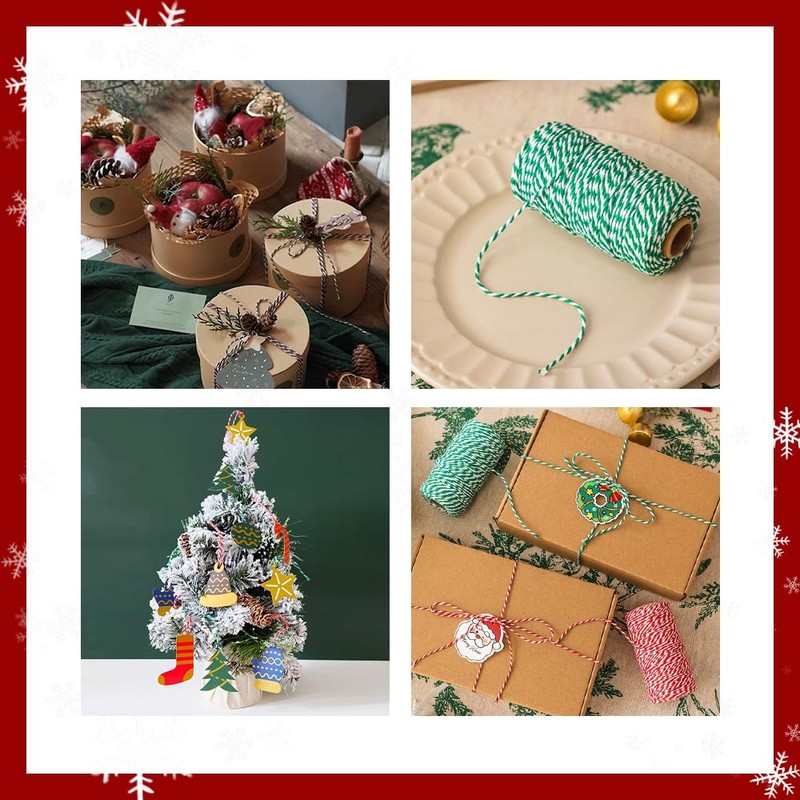 LannuMet 2MM Thick White&Red Twine Wrapping String for Christmas Decoration,Gift Packaging,Baking,Handicrafts,2 Rolls,Total 656 feet