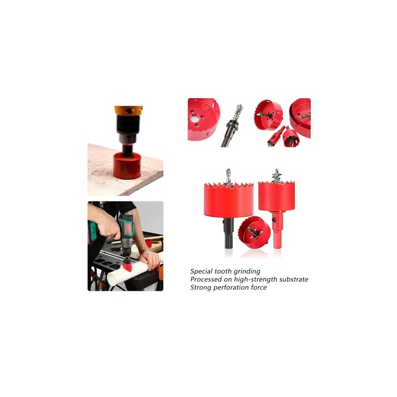 - Application: Suitable for equipment such as lithium drills, bench drills, and handheld drills; Can be used for opening holes in materials such as solid wood panels, artificial boards, density boards, gypsum boards, iron plates, aluminum alloys, color steel tiles, plastics, acrylic panels, etc