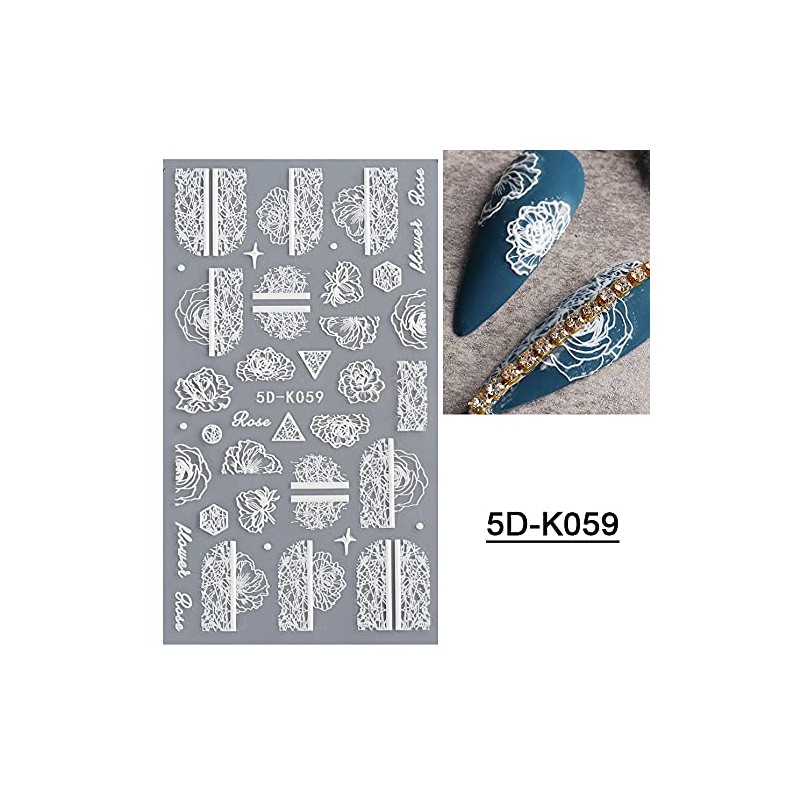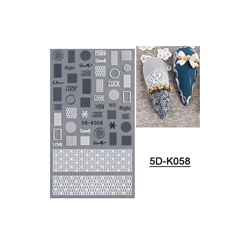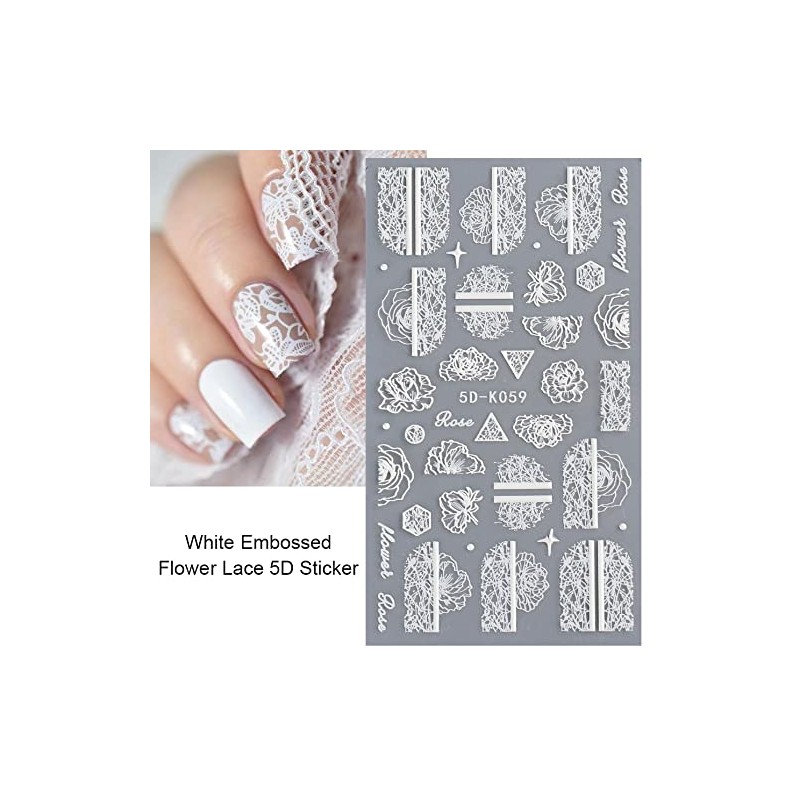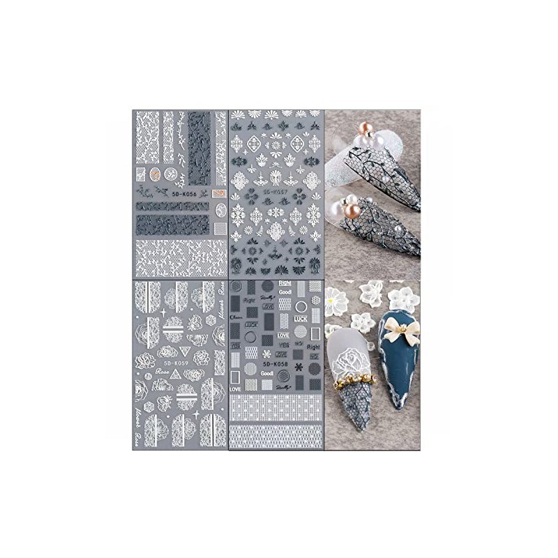 LANODO 4 Pcs Nail Stickers 5D Flower Black and White Lace Multiple Styles DIY...
