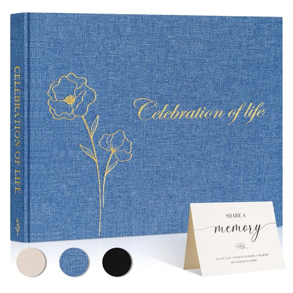 Lanpn Funeral Guest Book for Celebration of Life, Linen Memorial Service Registry Guest Book, Funeral Favors Sign in Books for Guests, Memory Book for Funeral with Memory Table Sign, Blue