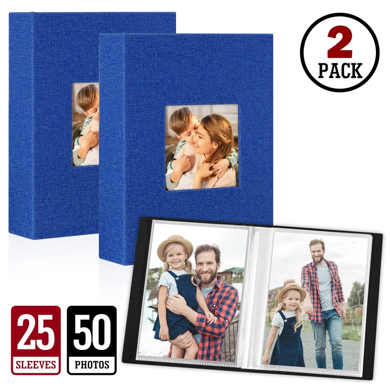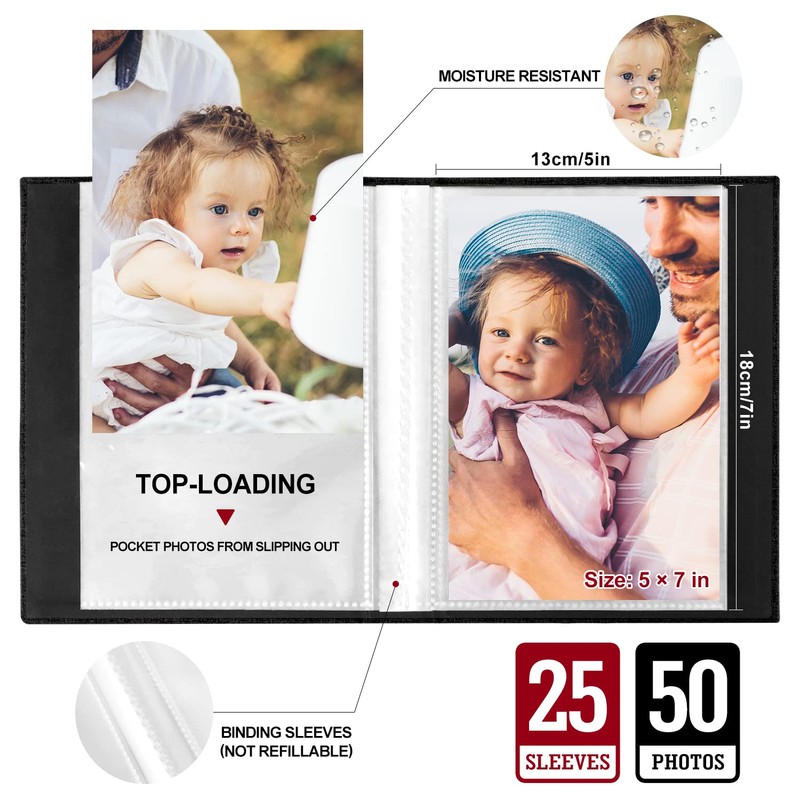 - Package includes: 2 packs photo albums, each pack comes with 25 pockets which can holds 50 portrait 7x5 pictures