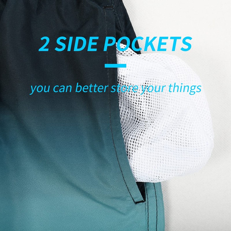 - 【2 Pockets with Mesh Lining】2 Side pockets not only carry your ID card,phone,key and other items, but also accelerate water flow and keep you hands free in swimming