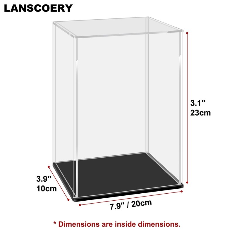 LANSCOERY Acrylic Display Case, Assemble Showcase Display Box for Collectibles, with Dustproof & Seamless Display Design, 7.9x3.9x9.1inch Black Base