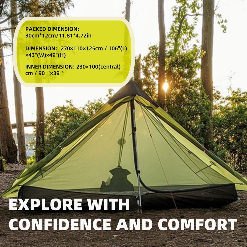 - 【Professional camping tent】This portable double-wall 1 person tent built for any ultralight trail missions regardless weather and climate. Requires 1 trekking pole (120-125cmcm) for set up.The single lightweight tent is for someone who wants to try lightweight camping for the first time. Double wall, quick pitch, ultra-light and affordable!