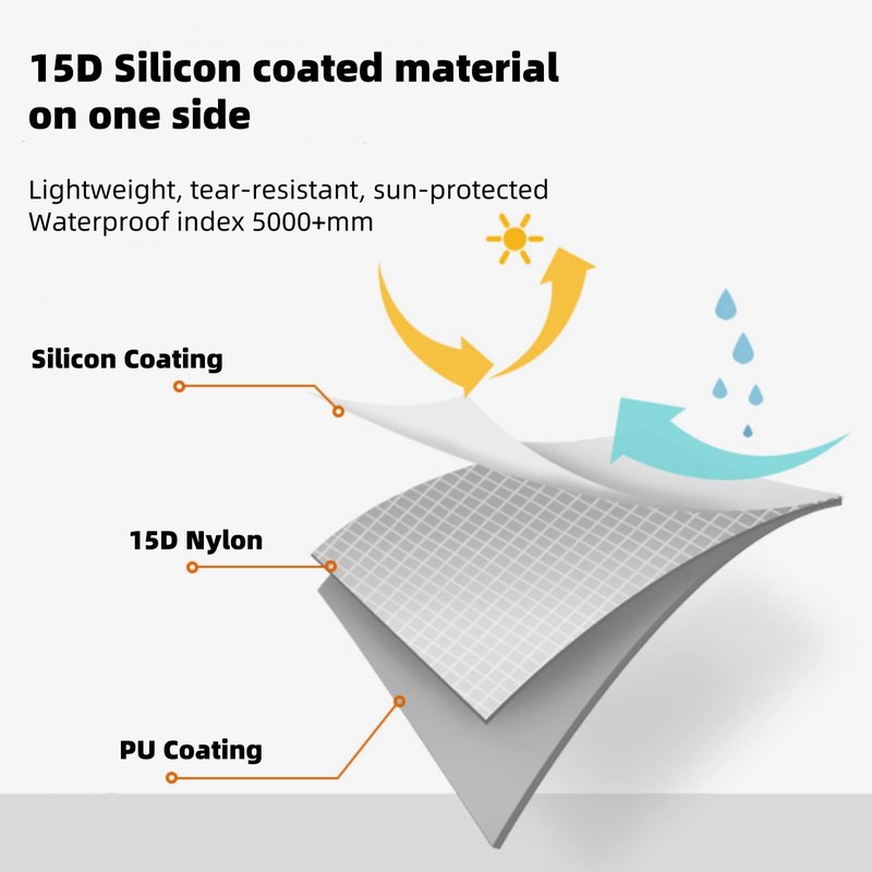 - 【Waterproof and Windproof Durability】Constructed with a 15D Nylon with PU coating (waterproof PU5000mm+) and the bath floor materials is 20D nylon, silicone/PU 6000mm, this tent withstands harsh weather conditions, keeping you dry and comfortable in heavy rain, wind, or hail.