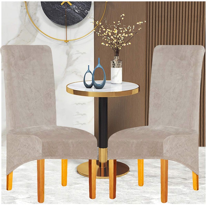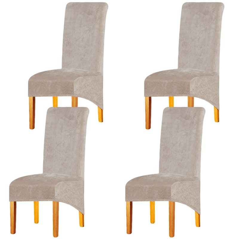 LANSHENG Velvet Dining Chair Covers, Stretch Large Chair Slipcovers for Dining Chairs Set of 4, Washable Removable Kitchen Chair Seat Protector for Dining Room (Camel, Set of 4)