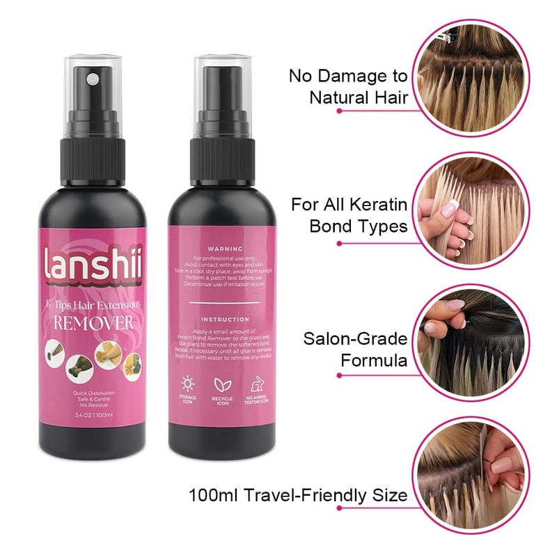 Lanshii Hair Extension Glue Remover for Keratin Extensions 100ml with 100g Italian Keratin Glue Pellets for Hot Fusion Extensions