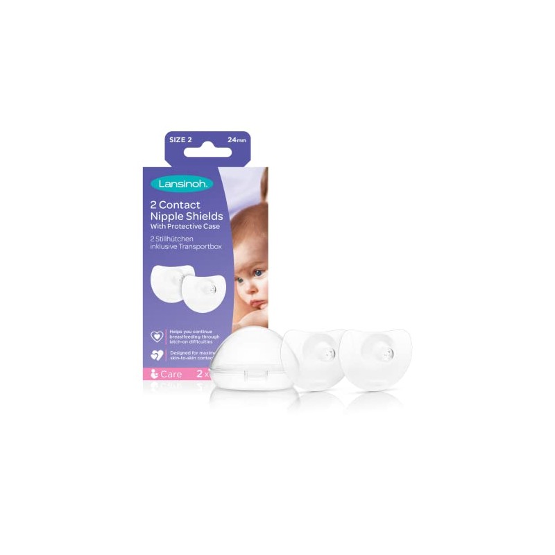 Lansinoh Contact Nipple Shields for Breastfeeding + Case Size : Large 24mm 2 pack - BPA free Nursing Breast Shield Cups Breast Feeding Latch Support Nipple Protection Maternity New Mum Essentials