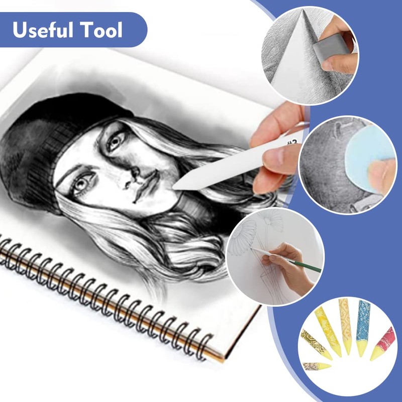 - Paper wiper for drawing: The drawing set for artists contains 24 mixed stumps with multiple measuring devices, 2 paper erasers, 1 eraser, 1 pencil extender, 1 eraser and 1 grey felt bag. Total 30 pieces, different sizes, a full range to help you complete sketching, nature painting and detail painting better.