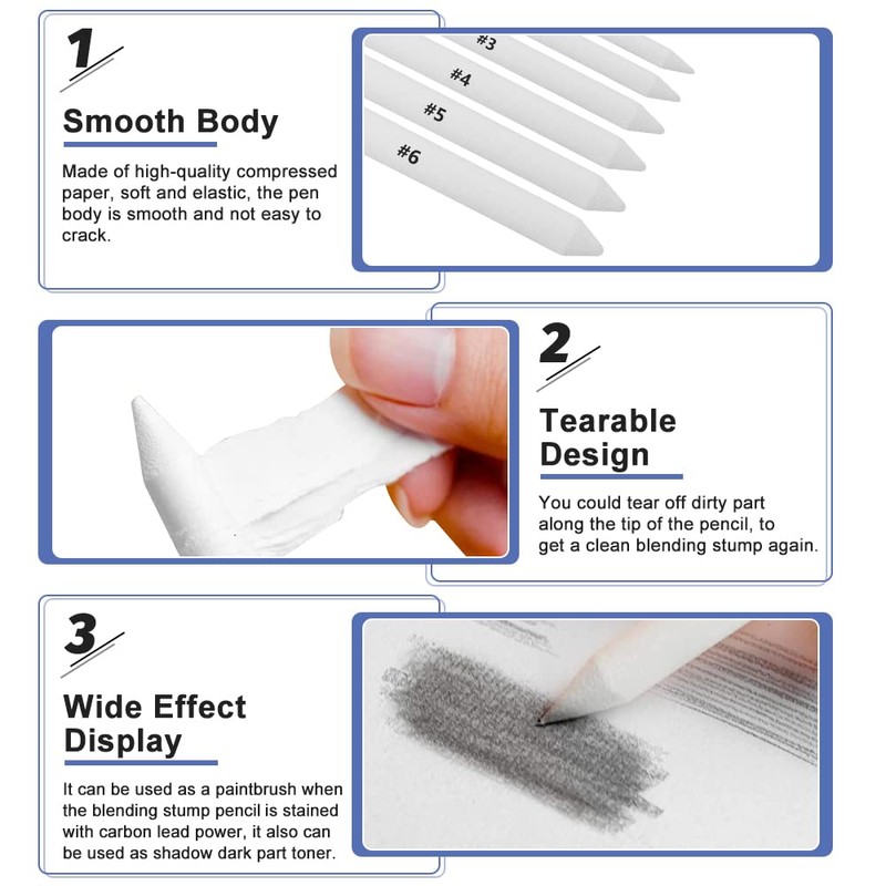 - Soft and elastic, smooth pen body: the multi-gauge stump is made of high-quality compressed paper, is soft and elastic, has a smooth body, is not easy to break and looks like a white pen. The tip is sturdy and straight, which makes it a good replacement for rubbing fingers, facilitating the painting process and making the painting more beautiful.