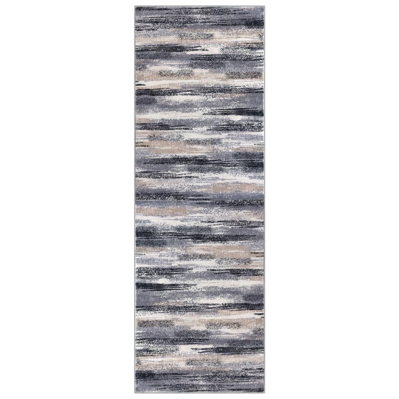 Lansny Modern Abstract Runner Rug 2.6x16, Grey Black Multi Washable Long Kitchen Runner Non-Slip Soft Hallway Rug Runner Thin Print Faux Wool Carpet for Entryway Bedroom Laundry Room Indoor Home Decor