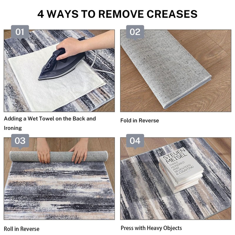- Key Reminder: To smooth out creases, first add a wet towel on the back and iron on a low heat setting; Next, reverse fold and roll it for up to a week; Then, place weights evenly if needed; Finally, lay it flat in an open space; Note: Slight color variations may occur under different lighting