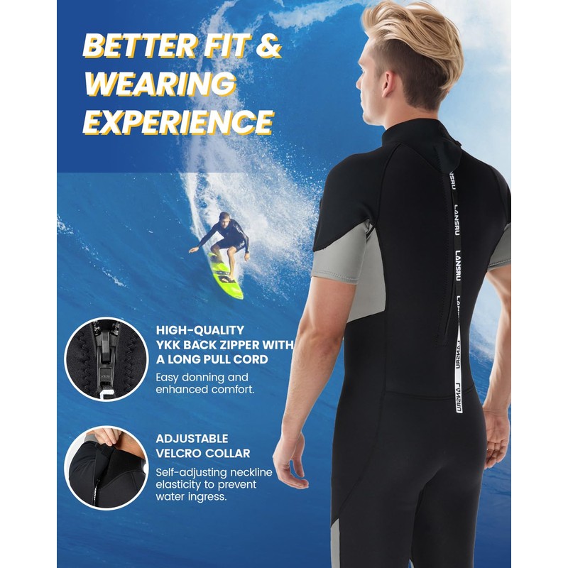 Lansru Shorty Wetsuits for Men - 2mm Upgraded CR Neoprene Wet Suit | UV Protection | Ideal Wet Suit for Men Cold Water Swimming| Back Zip for Surfing Snorkeling Diving Swimming