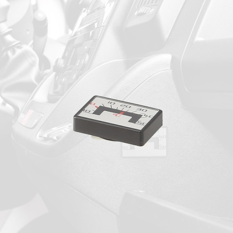 Das analoge Auto-Thermometer von Lantelme vereint Funktionalit?t mit klassischem Design. In edlem Schwarz mit silberner Anzeige fgt es sich dezent ins Fahrzeuginnere ein und liefert jederzeit zuverl?ssig die aktuelle Temperatur. Dank der gut ablesbaren Skala behalten Sie die Innen- oder Au?entemperatur stets im Blick C ohne Ablenkung w?hrend der Fahrt. Die Montage ist denkbar einfach: W?hlen Sie zwischen der Befestigung mit dem beiliegenden Klebepad oder nutzen Sie den integrierten Magneten fr flexible Anbringung. Ob im Auto, Wohnmobil oder in der Garage C dieses Thermometer ist ein ntzlicher Begleiter auf all Ihren Wegen. Temperaturbereich -10 bis +50C. Ma?e 4,7 x 3,2cm