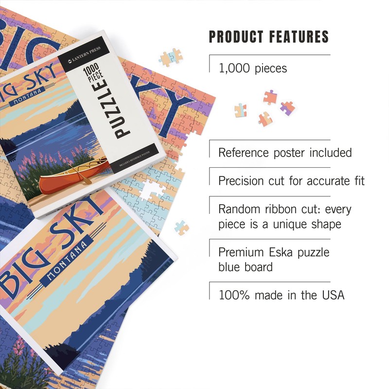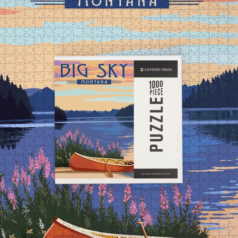 • 18.5 x 27.75 inches Lantern Press 1000 Piece Jigsaw Puzzle, Big Sky, Montana, Canoe and Lake