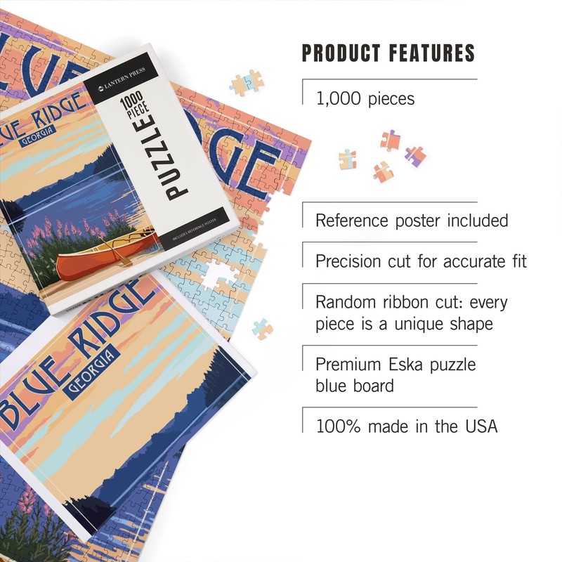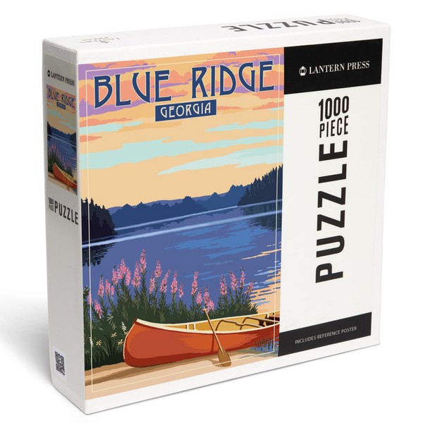 • 18.5 x 27.75 inches Lantern Press 1000 Piece Jigsaw Puzzle, Blue Ridge, Georgia, Canoe and Lake